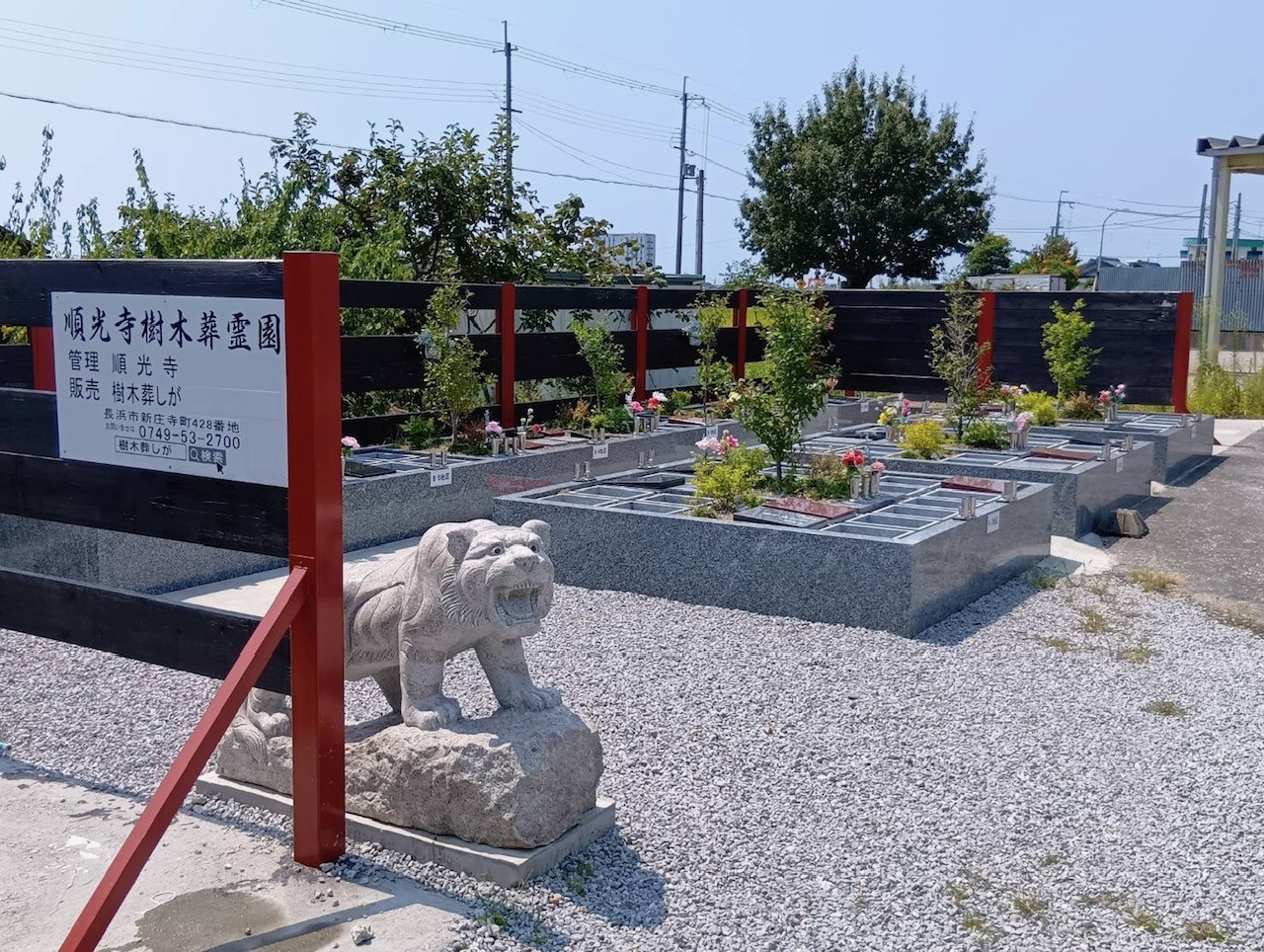 自然に還ることができるとして選ばれる方が増えてきています。令和元年春この長浜市に初めて順光寺樹木葬霊園をオープンいたしました。お陰さまで令和4年に完売致しましたが、この程皆様の強いご要望が有り、第二期順光寺樹木葬霊園をオープンする事となりました。今あるお墓の管理に不安な方、お墓の後継者がいない方、そういう方にご利用していただければ大変嬉しく思います。